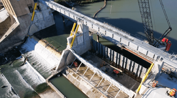 In the next several weeks, we expect (1) the hydraulic cylinders in Bay 1 will be connected to the gate; (2) to pretest the gate in Bay 1; (3) to place the second stage concrete behind the side seals in Bay 1; (4) to begin removing the work bridge on the upstream side of the dam; (5) to finish maintenance bridge details; and (6) continuation of remaining embankment dam armoring, concrete placements, and rock riprap installation.